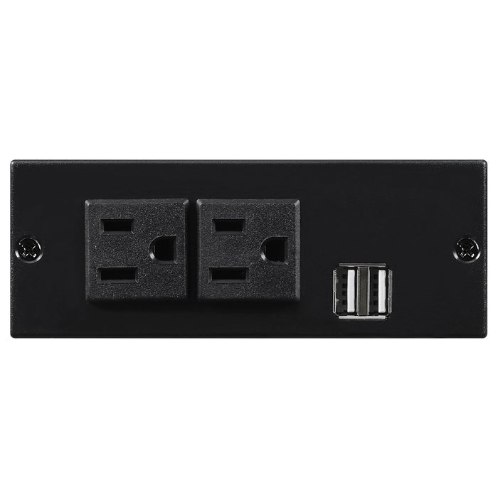 • Lift-top console with hidden storage, two cup holders, and integrated outlets