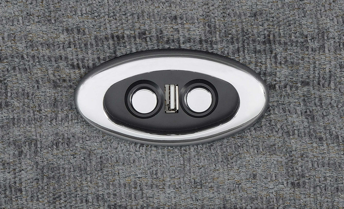 • Six-piece modular power sectional in charcoal performance chenille upholstery