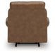 Details Pull tab reclining motion, Corner-blocked frame with metal reinforced seat, Attached cushions, High-resiliency foam cushions wrapped in poly fiber, Faux leather upholstery, Decorative turned legs with faux wood finish, 360-degree swivel, Gentle rocking motion