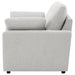 • Upholstered in coordinating dark grey fabric for a modern aesthetic