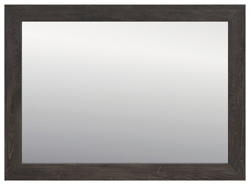 Signature Design by Ashley®Consumer's ChoiceWith its clean-lined look and modern attitude, this mirror is a fresh style awakening. A warm charcoal hue over replicated oak grain easily complem...