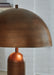 Dome sweet dome. Shine a light on your love of all things contemporary with this table lamp. Its sleek antiqued copper-tone finish and bold, columnar design add a brilliantly modern touch to any room. A dome-shaped shade provides a warm and focused light, perfect for reading or creating a cozy ambiance. The matching floor lamp (sold separately) is also a bright idea.