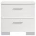 Elevate your bedroom with the sleek sophistication of this contemporary bedroom set. The panel bed features a clean-lined white high gloss headboard and a faux leather upholstered frame, delivering a refined yet modern aesthetic. Chrome-finished accents add a polished touch, while smooth-gliding drawers ensure effortless functionality. Designed for both style and durability, this set brings a fresh, minimalist feel to any space.