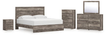 Ralinksi King Panel Bed with Mirrored Dresser, Chest and Nightstand
