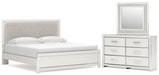 Zuraleus King Upholstered Panel Platform Bed, Dresser and Mirror