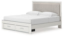Zuraleus King Upholstered Panel Platform Storage Bed, Dresser, Mirror and Nightstand