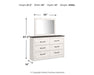 Details Includes dresser with mirror, Made of engineered wood (MDF/particleboard) and decorative laminate, White rustic finish with replicated cedar grain, Rustic gray planked replicated oak grain with authentic touch, 6 smooth-gliding drawers with faux linen lining, Large scale dark colored handles, Mirror attaches to back of dresser, Assembly required