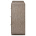 Enjoy the roomy storage and understated character of a modern six-drawer dresser. It's a fresh, understated design that showcases a wide top and recessed base that pair to deliver a timeless look. The dresser shows off wood grain details in a neutral barley brown finish, delivering stylish flair that complements in any setting. Each drawer is equally sized for easy storage and organization. Chrome finish bar pulls add a touch of contrast and textural appeal.