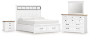 Ashbryn California King Panel Storage Bed with Mirrored Dresser and Nightstand