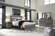 Details B221B5: Includes panel headboard, footboard, rails, roll slats and 2 smooth-gliding storage drawers, Made with engineered wood (MDF/particleboard) and decorative laminate, Smoky gray finish over replicated oak grain with authentic touch, Beveled edge drawer pulls, Faux linen finished drawer interiors, Bed does not require additional foundation/box spring; accommodates most zero clearance adjustable bases with the addition of a bunkie board, Small Space Solution, Mattress available, sold separately, Assembly required, B221B30: Includes dresser and mirror, Made with engineered wood (MDF/particleboard) and decorative laminate, Smoky gray finish over replicated oak grain with authentic touch, 6 smooth-gliding drawers, Linear pulls with antiqued gunmetal-tone finish, Faux linen finished drawer interiors, Mirror attaches to back of dresser; can also hang vertically or horizontally on wall, Safety is a top priority, clothing storage units are designed to meet the most current standard for stability, ASTM F 2057 (ASTM International), Drawers extend out to accommodate maximum access to drawer interior while maintaining safety, Assembly required, B221-91: Made of engineered wood (MDF/particleboard) and decorative laminate, Smoky gray finish over replicated oak grain, Linear pull with antiqued gunmetal finish, 1 smooth-gliding drawer and open cubby, Faux linen finished drawer interior, Slim-profile USB charging station, Power cord included; UL Listed, Small Space Solution, Assembly required,