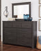Details Includes dresser and mirror, Made with engineered wood and decorative laminate, Dark charcoal finish over replicated oak grain, 7 smooth-gliding drawers; 3 drawer sizes, Linear pulls with dark pewter-tone finish, Mirror attaches to back of dresser, Safety is a top priority, clothing storage units are designed to meet the most current standard for stability, ASTM F 2057 (ASTM International), Drawers extend out to accommodate maximum access to drawer interior while maintaining safety , Assembly required