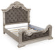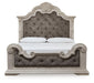 Bruchandi King Upholstered Panel Bed with Mirrored Dresser and Nightstand
