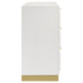 • Linear dresser drawer handles and a matching base complement its fresh, easy design