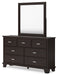 Details B441B9: Includes panel headboard, footboard, rails and slats, Made with hardwood solids, engineered wood veneer and MDF substrates, Dark brown finish, Floating panel headboard, Picture frame footboard, Foundation/box spring required, sold separately , Mattress available, sold separately, Assembly required, B441B1: Includes dresser and mirror, Made with hardwood solids, engineered wood veneer and MDF substrates, Dark brown finish, Metal bar pulls with bright nickel-tone finish, 7 smooth-gliding drawers with dovetail construction and metal center guides, Drawer interiors are lined with a wood grain laminate for a clean, finished look, Top moulding on dresser, Mirror attaches to back of dresser, B441-46: Made with hardwood solids, engineered wood veneer and MDF substrates, Dark brown finish, Metal bar pulls with bright nickel-tone finish, 5 smooth-gliding drawers with dovetail construction and metal center guides, Drawer interiors are lined with a wood grain laminate for a clean, finished look, Top moulding, B441-92: Made with hardwood solids, engineered wood veneer and MDF substrates, Dark brown finish, Metal bar pulls with bright nickel-tone finish, 2 smooth-gliding drawers with dovetail construction and metal center guides, Drawer interiors are lined with a wood grain laminate for a clean, finished look, Top moulding,