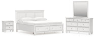 Fortman King Panel Storage Bed with Mirrored Dresser and Nightstand