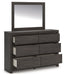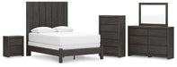 | Details | PCB3370B2: Includes headboard panel, headboard posts, footboard and rails, Made with engineered wood (MDF/particleboard/plywood) and decorative laminate for the right balance of affordability and durability , Dark charcoal finish over replicated oak grain, Decorative laminate replicates natural or man-made material surfaces with consistent color, pattern and texture, Foundation/box spring required, sold separately, Mattress available, sold separately, Assembly required, PCB3370B1: Includes dresser and mirror, Made with engineered wood (MDF/particleboard/plywood) and decorative laminate for the right balance of affordability and durability , Dark charcoal finish over replicated oak grain, Decorative laminate replicates natural or man-made material surfaces with consistent color, pattern and texture, Recessed hand grabs create hardware-less effect, 6 smooth-gliding drawers, Drawer interiors are lined with a faux linen laminate for a clean, finished look , Safety is a top priority, clothing storage units are designed to meet the most current standard for stability, ASTM F 2057 (ASTM International), Drawers extend out to accommodate maximum access to drawer interior while maintaining safety, Mirror attaches to back of dresser; can also be mounted on wall horizontally or vertically, Assembly required, PCB3370-46: Made with engineered wood (MDF/particleboard/plywood) and decorative laminate for the right balance of affordability and durability, Dark charcoal finish over replicated oak grain, Decorative laminate replicates natural or man-made material surfaces with consistent color, pattern and texture, Recessed hand grabs create hardware-less effect, 5 smooth-gliding drawers, Drawer interiors are lined with a faux linen laminate for a clean, finished look, Safety is a top priority, clothing storage units are designed to meet the most current standard for stability, ASTM F 2057 (ASTM International), Drawers extend out to accommodate maximum access to drawer interior while maintaining safety, Assembly required, PCB3370-92: Made with engineered wood (MDF/particleboard/plywood) and decorative laminate for the right balance of affordability and durability, Dark charcoal finish over replicated oak grain, Decorative laminate replicates natural or man-made material surfaces with consistent color, pattern and texture, Recessed hand grabs create hardware-less effect, 2 smooth-gliding drawers, Drawer interiors are lined with a faux linen laminate for a clean, finished look, 2 slim-profile USB-C charging ports, Power cord included; UL Listed, Assembly required, | |