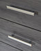 Details B214-46: Made of engineered wood (MDF/particleboard) and decorative laminate, Gray finish with replicated wood grain, Faceted chrome-tone pulls and accents, 5 smooth-operating drawers, Drawer interiors are lined with a faux linen laminate for a clean, finished look, Safety is a top priority, clothing storage units are designed to meet the most current standard for stability, ASTM F 2057 (ASTM International), Drawers extend out to accommodate maximum access to drawer interior while maintaining safety, B214-92: Made of engineered wood (MDF/particleboard) and decorative laminate, Gray finish with replicated wood grain, Faceted chrome-tone pulls and accents, 2 smooth-operating drawers, Drawer interiors are lined with a faux linen laminate for a clean, finished look, USB and wireless charging options, Power cord included; UL Listed, Assembly required, B214B1: Made of engineered wood (MDF/particleboard) and decorative laminate, Gray finish with replicated wood grain, Faceted chrome-tone pulls and accents, 6 smooth-operating drawers, Drawers lined with faux linen laminate, Mirror attaches to back of dresser, Includes tipover restraint device, Assembly required, B214B5: Includes headboard, footboard and side rails, Made of engineered wood (MDF/particleboard) and decorative laminate, Gray finish with replicated wood grain, Faux leather upholstery, Faux crystal and faceted chrome-tone metal accents, Accent LED lights with remote to control color and brightness, 2 smooth operating drawers, Power cord included; UL Listed, Mattress and foundation/box spring available, sold separately, Assembly required, Bed is not compatible with an adjustable base,