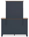 | Details | B414-87: Made with hardwood solids, mindi wood veneer and MDF substrates, Two-tone finish features a dark slate blue with a light brown wood-tone top, ¼" bolts (not included) are needed to attach headboard to your existing bed frame, Assembly required, B414B1: Includes dresser and mirror, Made with hardwood solids, mindi wood veneer and MDF substrates, Two-tone finish features a dark slate blue with light brown wood-tone top, Nickel-tone metal knobs, 6 drawers with fully finished interior, dovetail construction and heavy duty ball-bearing side glides, Mirror attaches to back of dresser, B414-45: Made with hardwood solids, mindi wood veneer and MDF substrates, Two-tone finish features a dark slate blue with a light brown wood-tone top, Nickel-tone metal knobs, 4 drawers with fully finished interior, dovetail construction and heavy duty ball-bearing side glides, B414-92: Made with hardwood solids, mindi wood veneer and MDF substrates, Two-tone finish features a dark slate blue with a light brown wood-tone top, Nickel-tone metal knobs, 2 drawers with fully finished interior, dovetail construction and heavy duty ball-bearing side glides, | |