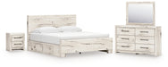 Lawroy King Panel Bed with Mirrored Dresser and Nightstand