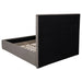 • Queen bed with clean panel headboard and fully upholstered low-profile frame