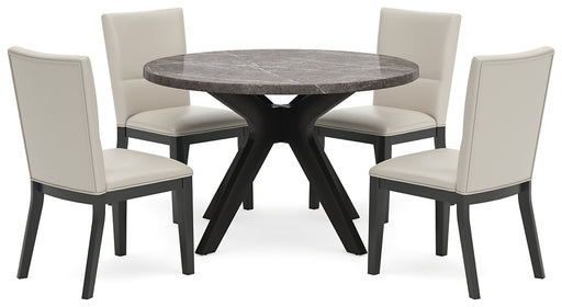 Signature Design by Ashley®Embrace the feel of casual contemporary design when you sit down to this dining package. Matte black frames and a contrasting faux marble tabletop ...