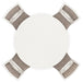 Come together for a delightful dining experience. Chic and relaxed, this dining table and chair set effortlessly captivates with its elegant simplicity. The timeless design pairs a crisp white hue with gray textured upholstery. It's a fresh addition everyone will notice.