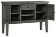 Cool and on-trend. This versatile server sports an antiqued gray color for a contemporary-yet-casual feel. The server features two cabinets, a smooth-gliding drawer and an open cubby with a wine rack, making it a breeze to clear away clutter and expand your serving space. Dining with friends and family has never been so stylish.