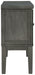 | Details | Made with hardwood solids, select acacia veneer and engineered wood, Antiqued gray finish, 2 cabinets, each with a center shelf, Shelves are removable and adjustable, Smooth-gliding drawer, Open cubby with wine rack divider, Assembly required | |
