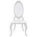 This dining chair blends classic form with modern materials for a bold statement. An oval backrest and gently flared silhouette evoke traditional influence, while the stainless steel frame and Queen Anne cabriole legs add a sculptural presence. Upholstered in smooth white faux leather, the cushioned seat and back provide comfort with easy care. The polished chrome finish completes the look with reflective shine and visual contrast.