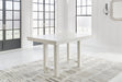| Details | D642-32: Made with rubberwood solids, ash veneer and MDF substrates, Antiqued white finish with wood grain texture, Tabletop with planked effect, Two 12” extension leaves, Table extends by pulling both ends and dropping in leaf, Assembly required, D642-124: Made with wood, Antiqued white finish with wood grain texture, Foam cushion with polyester upholstery, Nailhead trim, X-back, Assembly required, | |