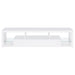 • Sleek, modern TV stand with pristine glossy white finish and clear glass accents