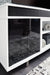 Combining a white high-gloss finish with black glass doors, this TV stand proves opposites really do attract. It's the perfect blend of modern style and functionality, with an electric fireplace option and ample space for your media devices, flat-screen TV and soundbar. What a smart choice on so many levels.