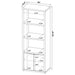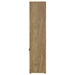 The best of both worlds, a charming media tower bookcase adds both open display space and hidden storage in your inviting living room. Featuring a melamine paper finish that resembles mango wood, complete with roughhewn saw marks for a realistic, textured presentation, the tower is a perfect choice alone or flanking the matching TV stand. Three upper shelves provide a place for photos and art and glasswork, or can be used to display favorite media. Underneath, a two-door cabinet reveals additional shelving for easy organization of accessories and other odds and ends you'd prefer tucked out of sight. Sleek black pull handles are a perfect finishing touch.