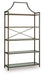 | Details | Shelves made with clear glass, Metal frame, Frame with antiqued bronze-tone finish, 5 fixed shelves, Assembly required | |