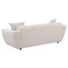 Plush, sculptural, and undeniably bold, this modern sofa set showcases chunky silhouettes wrapped in soft greige chenille. Wide splayed arms frame deep, channel-tufted contours, while attached waterfall seats are built with pocket coil construction for long-lasting support. Textured upholstery adds dimension to the grid-like shaping, offering a refined yet cozy aesthetic. Complete with matching knife-edge accent pillows, this sofa set blends form and function with contemporary ease.