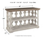 | Details | Made of pine wood, pine veneer and engineered wood, Two-tone distressed finish; weathered gray top and vintage white base, Fixed center shelf; lower display space, Assembly required | |