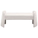 Soften the foot of your bed or a living room wall with the inviting nature of a modern accent bench. It's a charming choice, offering an interesting silhouette complete with rounded supports that extend upward to create arms. The bench is padded with foam for excellent comfort. Ivory boucle upholstery fabric is soft and textured, creating depth and dimensionality in your space. This bench features a contemporary profile, perfect for a modern bedroom, foyer, or living room.