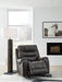 Tired of searching for the right rocker recliner? Find your perfect fit with this chair. Its rich, supple upholstery has the look of timeless leather at a price you can afford. The generous seat and tall back are specially crafted to provide extra support and comfort for broader and taller individuals. Pillowy cushions and pop-out cup holders make this the only place you’ll want to be after a long day.