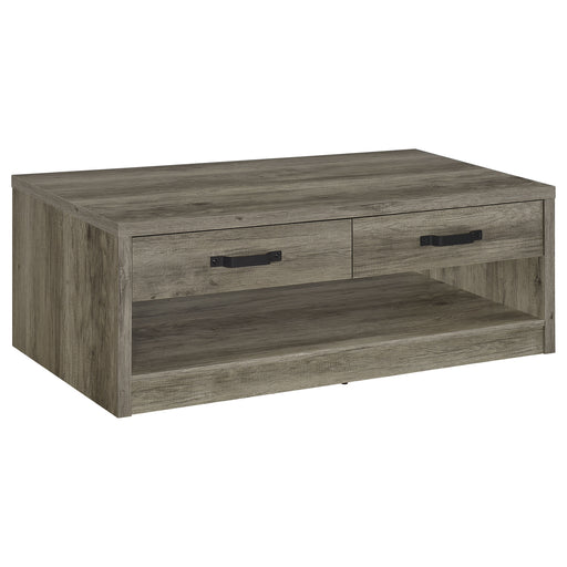 CoasterEnhance your living space with this rustic yet contemporary coffee table. Featuring a gray driftwood finish over engineered wood and scratch-resist...