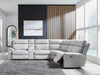 | Details | Includes 6 modular pieces: left-arm facing power recliner, 2 armless chairs, console with storage, wedge and right-arm facing power recliner , "Left-arm" and "right-arm" describe the position of the arm when you face the piece, Versatile modular pieces fit together in a variety of configurations, One-touch power control with adjustable positions, Easy View™ adjustable headrest and zero-draw USB port, Zero-draw technology only consumes power when the USB receptacle is in use, Zero-gravity mechanism allows optimum reclining comfort with infinite reclining positions at the touch of a button, Corner-blocked frame with metal reinforced seat, Attached cushions, High-quality foam cushions wrapped in poly fiber, Polyester upholstery, Console with 2 cup holders and hidden storage , Power cord included; UL Listed | |
