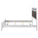 • Queen panel bed with white finish and glamorous metallic leatherette panels