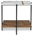 Details Made with white marble, light brown mango wood and engineered wood, Marble top with wood inlay, Metal frame with black finish, 1 shelf, Color variations, fissures, mineral deposits and veining in the marble top are naturally formed and are not defects, Assembly required
