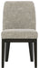 Dressed to thrill, this simply stunning armless dining chair offers a high-design look at a down-to-earth price. Ultra sleek lines are accentuated with a dark waxy brown oak-tone finish that’s so easy on the eyes. Suitably upholstered in a tweed-like neutral fabric, the softly contoured back design is tailor-made for comfort. Whether it's part of a dining arrangement or used as extra seating, it has a timeless look that’s made to last.