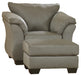 Talk about fine lines and great curves—that’s the beauty of this chair and ottoman. Made to suit your appreciation for clean, contemporary style, this fashion statement is complete with a striking flared frame, comfy pillow top armrests, tapered feet on the ottoman and an ultra-soft upholstery that holds up to everyday living.