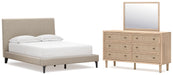 Cielden Full Upholstered Bed with Roll Slats, Dresser and Mirror