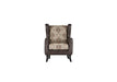 Play up the traditional ambiance of your living room or den with a timeless wingback accent armchair. Perfect for lounging, it boasts plush foam cushions with two-tone upholstery that creates a sense of depth and dimension. The sides, arms, and outer surface of the chair feature dark brown faux leather upholstery, offering sleek, refined ambiance. The seat and back cushions are a lovely brown-toned jacquard patterned upholstery that adds richness and dimensionality you'll love in your living room. Gently flared legs complete the look with a dark brown finish that offers matching flair.