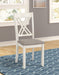 Complete your modern farmhouse dining room with this seven-piece dining set. Complete with one dining table and six side chairs, it offers a matching vintage white finish that lends a country charm. The spacious, rectangular dining table also features a chestnut colored, sandblasted wood tabletop with a dry brushed weathered finish. Each of the six chairs have a sturdy solid wood frame and flared backrests with open double-cross designs. Rest comfortably on their cushioned seats, wrapped in a high performance fabric in a grey hue that complements numerous color palettes.