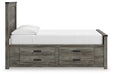 Cool, casual style is for all ages. With this full panel bed with storage, they get the function they need plus the refined design you love. Approachably neutral in a rustic warm gray, it’s adaptable enough to pair with an assortment of existing colors and room decor. Faux metal detailing with nailhead accents lends an industrial edge. Need more storage space? Drawers under the bed help floors stay clutter-free.