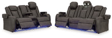 This power reclining seating set goes beyond basic comfort. It upgrades the everyday, turning your living room into an entertainment hub. Don’t want to leave your seat? Keep essentials in reach with assorted charging options, cup holders and storage arms. You can create an even cooler vibe for family movie nights and friendly gaming matches with LED lights. And your sleek style isn’t compromised—its diamond stitching and streamlined arms recall the aesthetics of luxury automobiles.