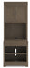 Details Includes bookcase base and door hutch, Made with acacia wood, veneer and engineered wood, Distressed weathered gray finish, Hardware with pewter-tone finish, Base with 1 drawer and 1 shelf, Door hutch with 2-door cabinet, Hutch has LED light under shelf, Power cord included; UL Listed, Assembly required